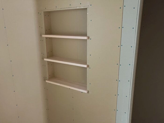 202602.16 施工日誌 楡木の家 M様邸 こんにちは! 楡木 M様邸では、内部造作工事が順調に進められています! こちらは洗面所のニッチで、化粧品や歯ブラシなどを置けて、手に取りやすく実用的でありながら、おしゃれに見せることもできる優れもの! 物を置く面は、棚板のため、お手入れがしやすいです୧(˃◡˂)୨ そして、キッチン横のパントリーの入り口は、アールの下がり壁に! 職人技が光る綺麗な曲線は、こちらの空間の大きな見どころとなりそうです。 これだけじゃないM様邸の見どころポイント、次は何が登場するでしょうか?楽しみです! 株式会社アリスト 前の記事 一覧へ戻る 次の記事